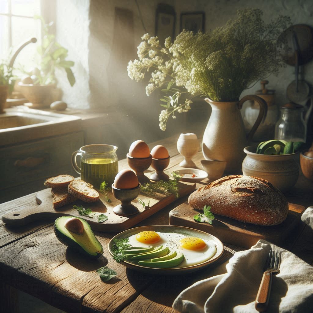 Breakfast at 9:50. Two fried eggs with garlic, two slices of brown seeded bread with butter, two avocados, a couple of spoons of baba ghanoush, and one chocolate pastry. Good breakfast.
